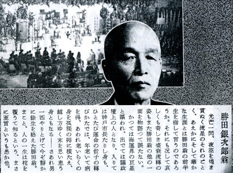 神戸海運界の巨頭として、不審の業界が勝田当選へ全力を傾けたという。