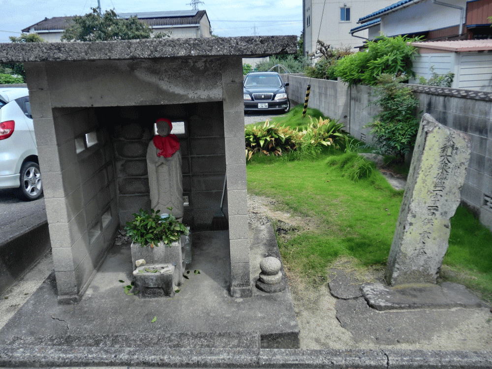 湯山川(現在の石手川)付け替え普請犠牲者の供養塔(右)と地蔵尊