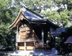 周敷神社の神殿は、桁行3間、梁間2間の切妻平入り流造り、軒は2重繁垂木で木組みや彫刻は、安土,桃山時代の特徴をよく伝えている見事な神社建築である